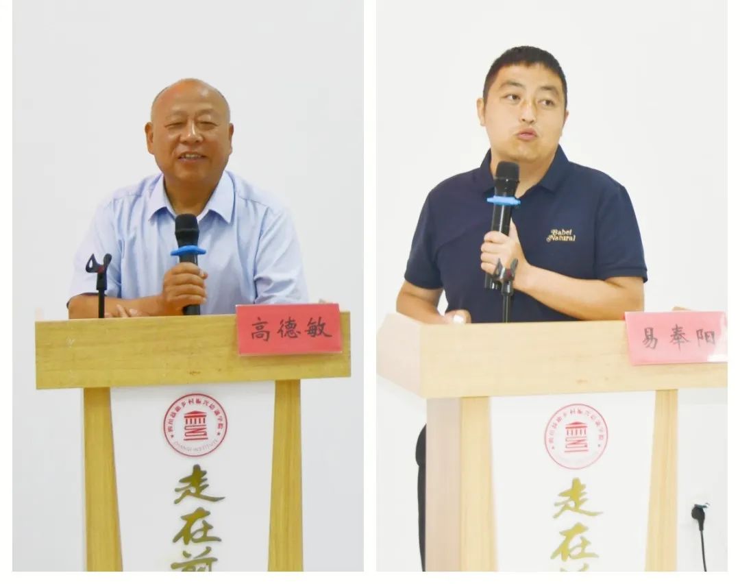 研修营第二环节战旗经验分享,战旗村党委书记高德敏分享了农村集体经济组织要活用集体所有权,对村庄所有资产、资源摸底调查的基础上通过出租、经营、入股等方式实现增收、增效;战旗村党委副书记易奉阳从党建引领、书记接续绘蓝图,集体统领综合利用集体资产、资源,构建“权能分立”、“统分结合”治理新机制三个方面系统介绍了战旗村集体经济发展的经验和做法,并总结出“团结奋斗、敢为人先”就是战旗魂 !