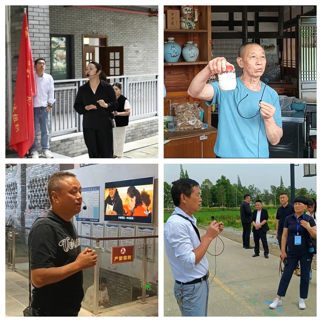 本次研修营开幕式结束后全体参会人员在高德敏书记的引领下,由战旗村部分本土讲师开展“点位”分享:战旗村纪委委员杨明学从合作共建战旗学院、村庄党建、发展集体经济等方面介绍了战旗的综合治理经验;战旗醪糟坊冯忠会通过村集体企业多年的工作经验,六十八岁年纪依旧传承古法醪糟技艺,村集体在营销和学习知识方面给予支持、鼓励;战旗酒厂总经理赵培健在村集体的鼓励下返乡创办战旗酒厂,不仅活化了村庄的业态、增加了就业,也让战旗的品牌更亮,自身也得到了更大的提升。在不同的点位战旗本土学员用自己的故事讲述了集体与成员的共同发展。